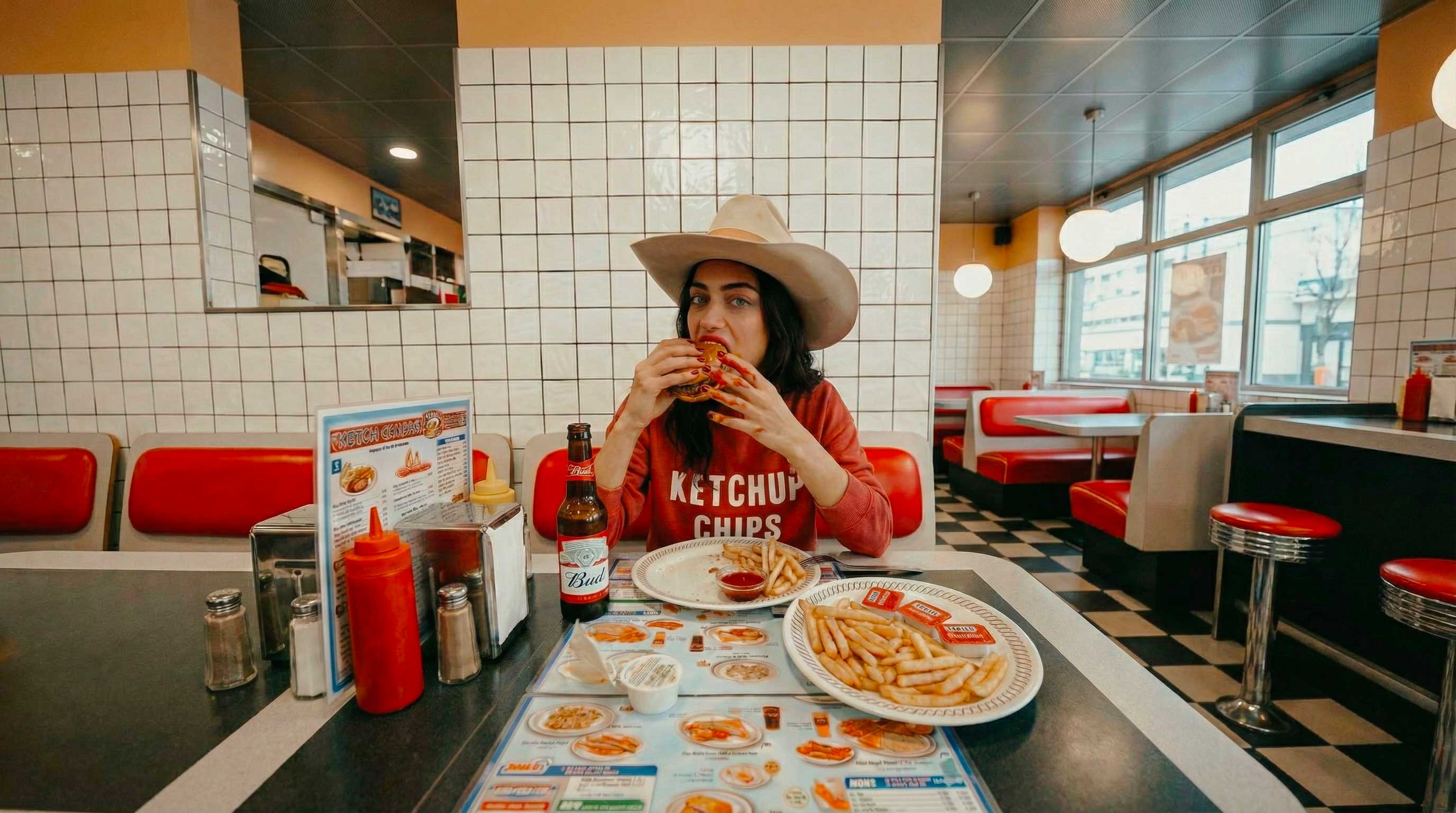 Like a contact sheet left on a table. The Polaroids are lined up, multiplying attitudes and details. We see the spontaneity of a stolen moment rather than a calculated photo shoot.